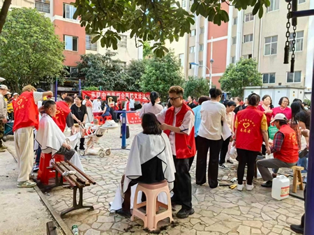 志愿者们给居民提供便民服务