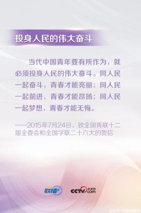 习近平总书记一直以来都十分关心青年成长成才,常常走近青年、倾听青年、鼓励青年。他说,“青年最富有朝气、最富有梦想”,“中华民族伟大复兴终将在广大青年的接力奋斗中变为现实”。央视网《联播+》特梳理总书记对广大青年的寄语,与您一起学习。